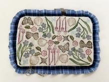 KAPPOBE さんに作って頂いた小さめのランチョンマットです。 表は国産リネンに器で使っている印判をひとつひとつ押した生地。 裏は私の大好きなインドのルンギを合わせました。 このまま壁に飾ったり、花瓶の下に敷いても素敵だと 思います。 リバーシブルでお使い頂けます。 サイズ 横 約26cm 縦 約19cm